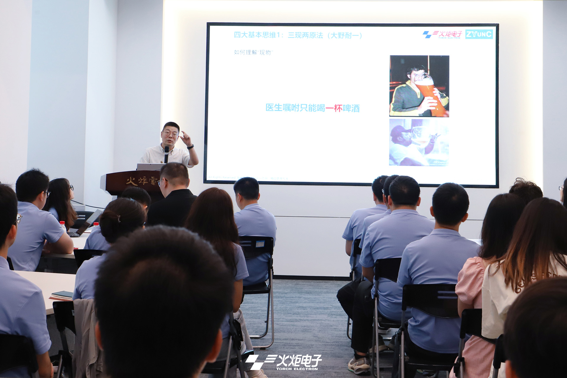 Recently, Torch Electron successfully held the fifth Yellow Belt training session of the Lean Improvement Program at the Special Capacitor Plant training center. As the final theoretical course of this program, members from Production Team 2 and key representatives from various departments gathered together under the guidance of Lean Management expert Mr. Cai Wang. The training covered two core modules: "Scientific Thinking for Problem Solving and A3 Report" and "Failure Mode and Effects Analysis (FMEA)," laying a solid foundation for the upcoming project practice stage.