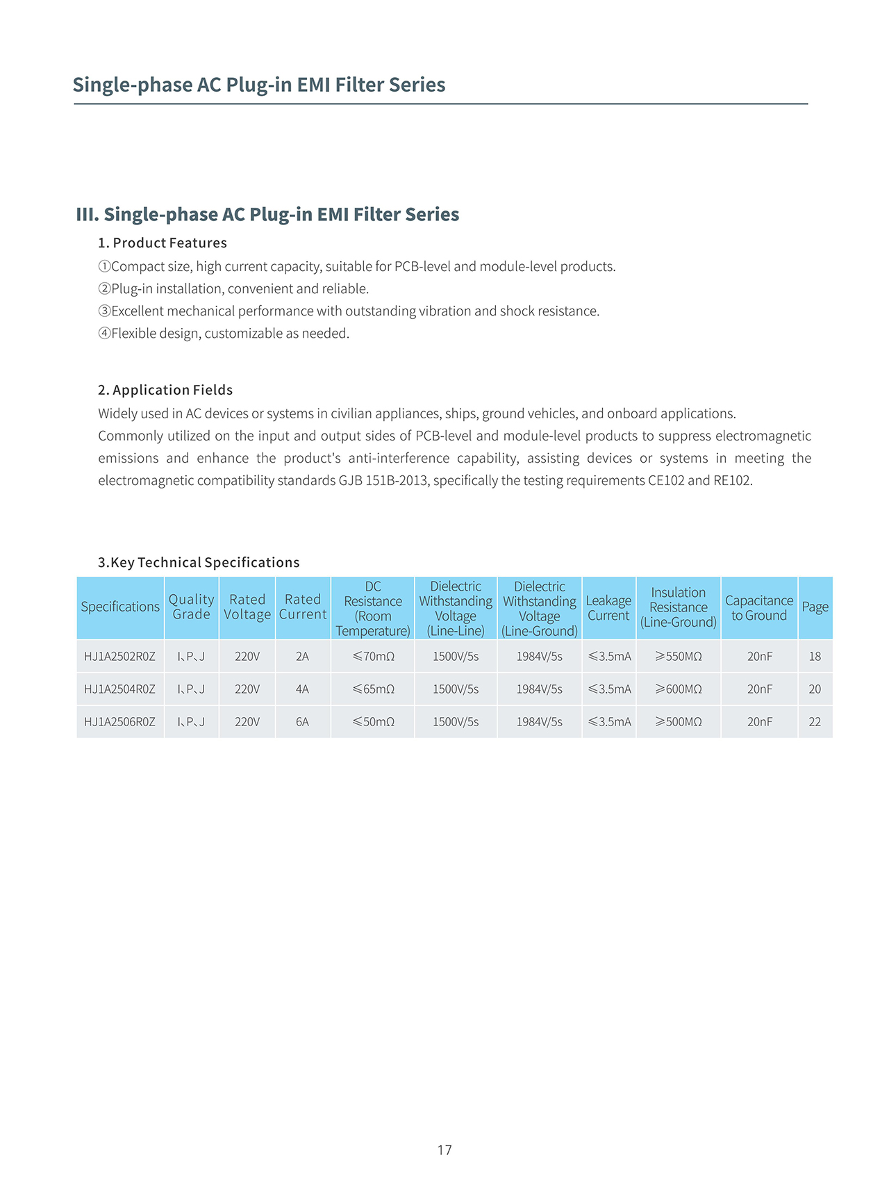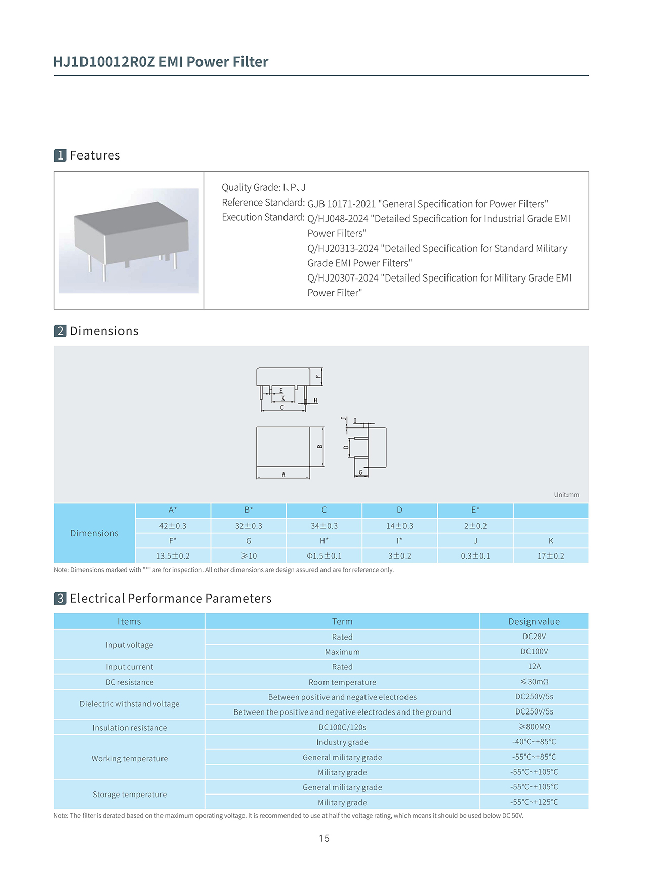 Product Description DC Plug‑In EMI Power Filters Series