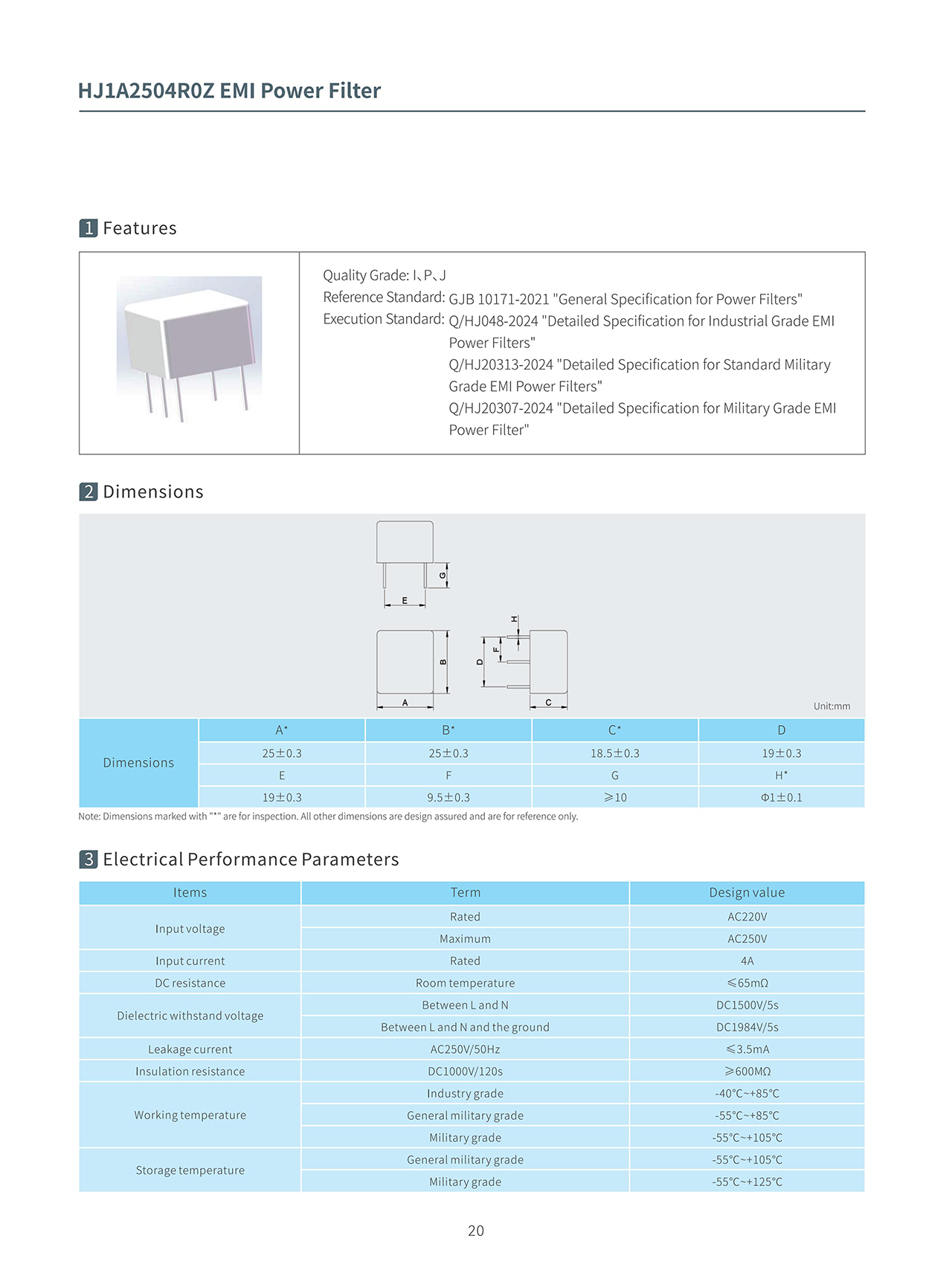 Torch EMI Power Filters HJ1A2502R0Z