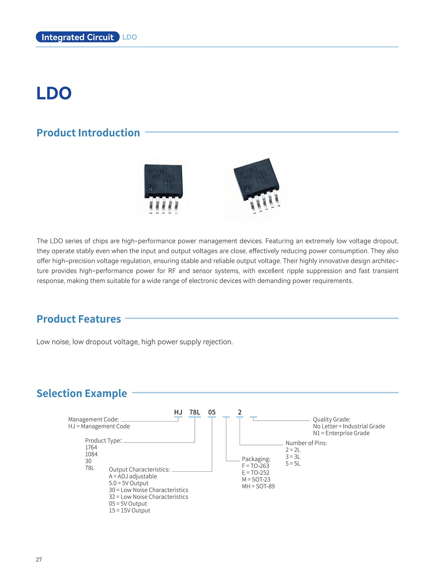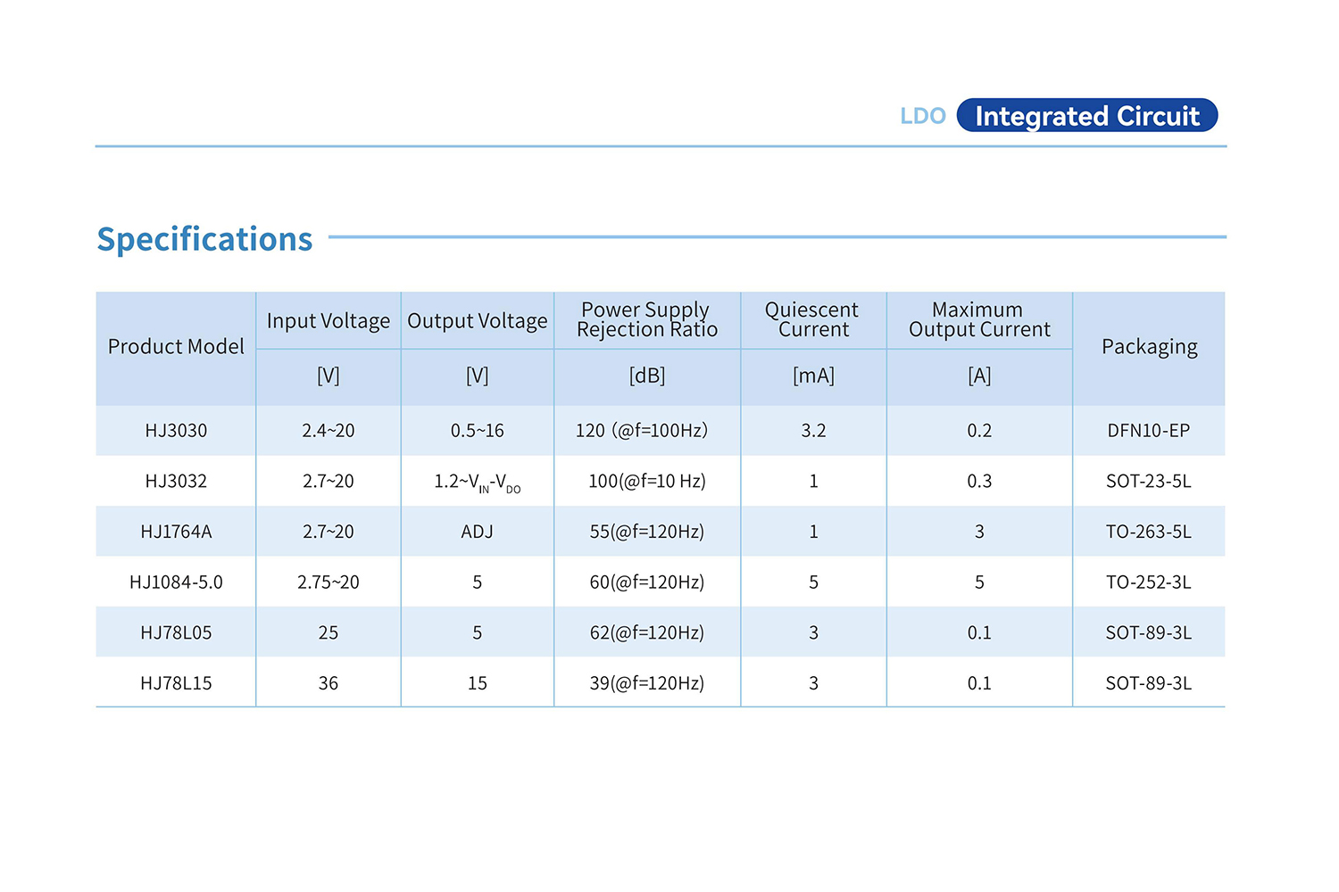 With its high-accuracy voltage regulation, excellent ripple rejection, and fast transient response, this LDO series provides a stable and reliable power supply for RF circuits, sensor systems, and other electronic devices with stringent power requirements.